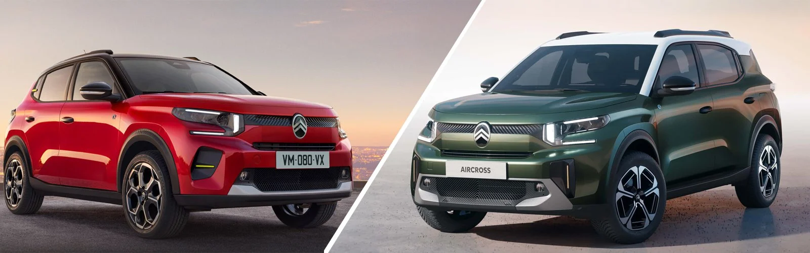 Entrambi i modelli adottano il nuovo linguaggio stilistico di Citroën, con un frontale imponente caratterizzato da gruppi ottici a LED e una calandra rivisitata. Tuttavia, la Aircross ha un aspetto più robusto e rialzato, tipico dei SUV, mentre la Nuova C3 punta su un design più aerodinamico e cittadino.